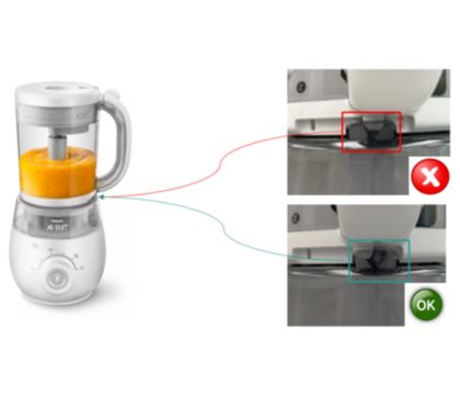 블렌딩할 때 물이 쏟아지지 않도록 다음 단계에 따라 용기가 제대로 고정되어 있는지 확인하세요.